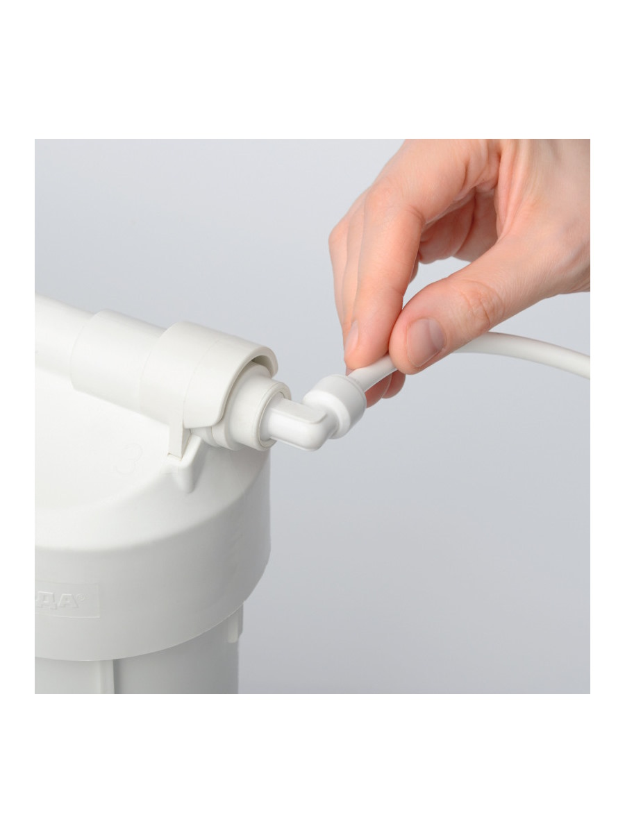 - Угольный картридж K200 (Карбон-блок) обеспечивает повторную сорбционную очистку, устраняя запахи и улучшая вкус воды (ресурс: до 4 000 литров*).