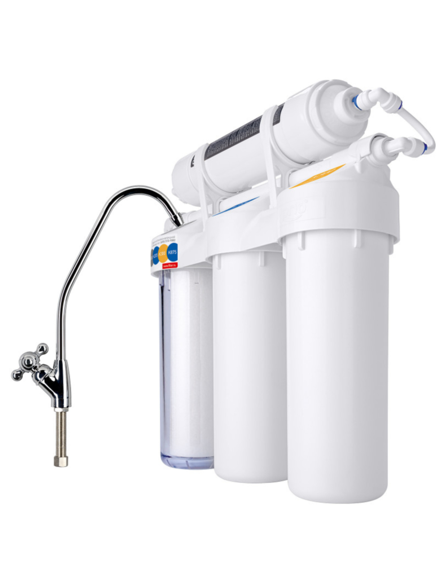 - Двойная сорбционная очистка обеспечивается двумя угольными картриджами, глубоко очищающими воду от хлора, органических соединений и неприятных запахов.