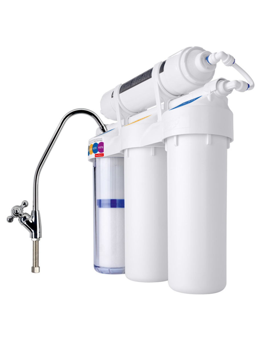 - Третий этап предусматривает повторную сорбционную очистку воды от хлора и органических веществ с помощью угольного картриджа K205, улучшая вкус и устраняя запахи (ресурс: до 4000 литров*).