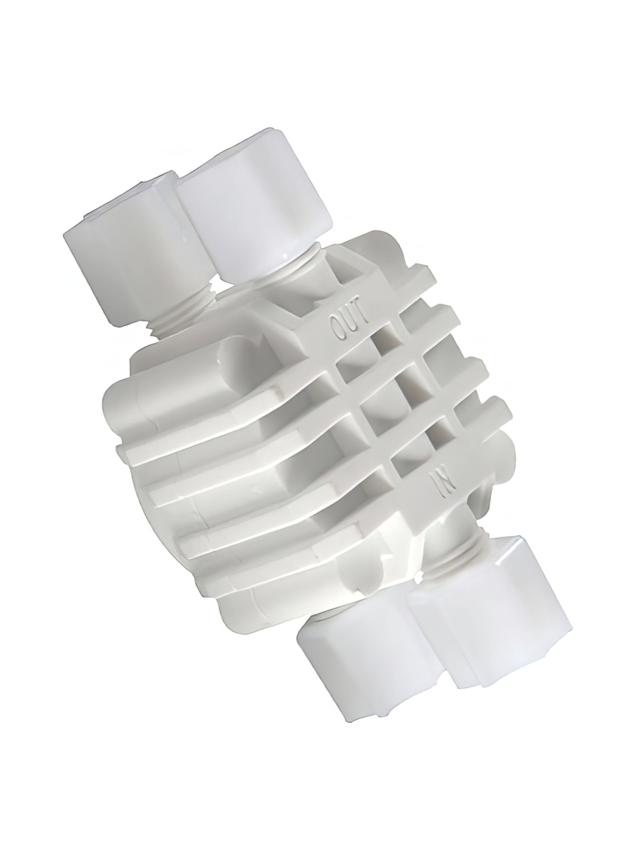 - Автопереключатель потоков воды с соединительными размерами 1/4 или 3/8 дюйма, подходит для большинства бытовых систем обратного осмоса различных производителей.