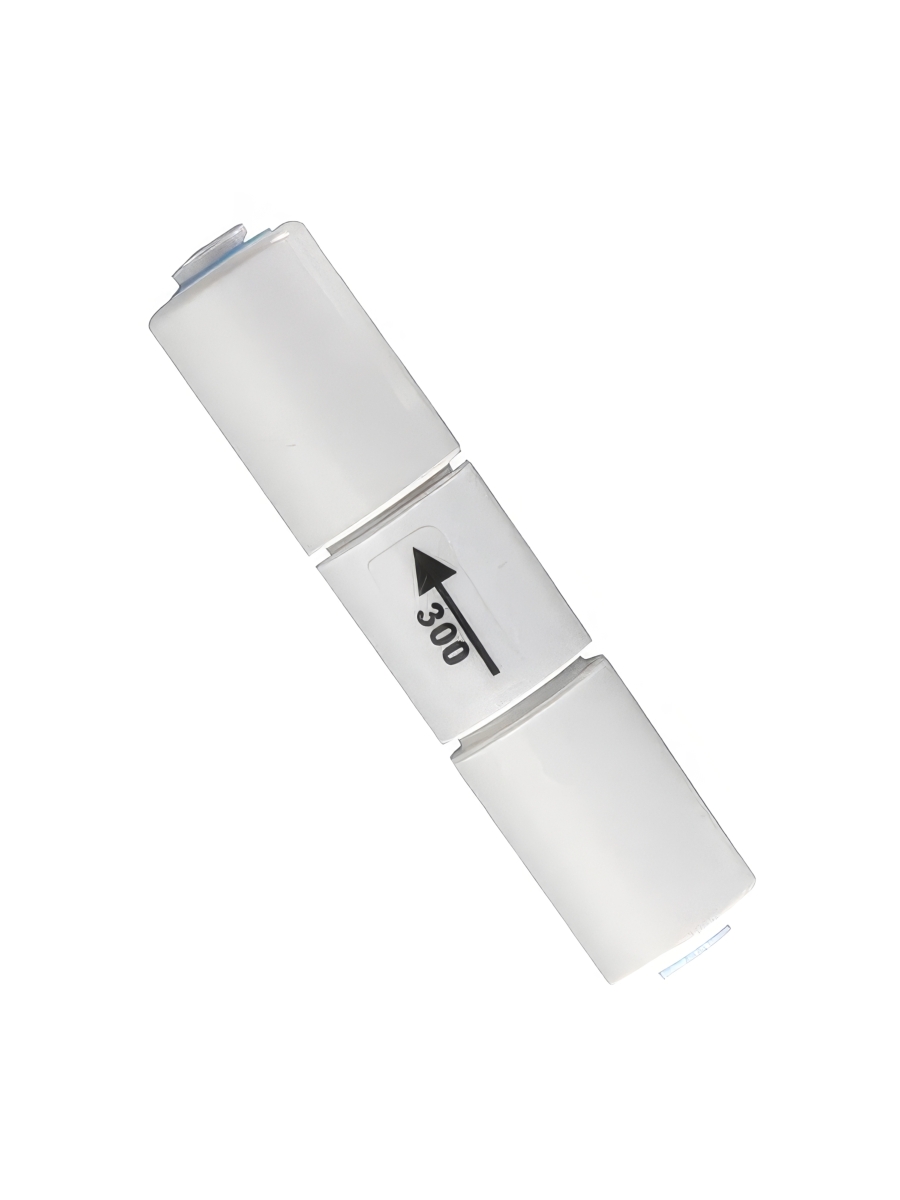 - Имеет два быстросъемных коннектора для удобного подключения к гибкой трубке, ведущей от дренажного слива к обратноосмотической мембране.