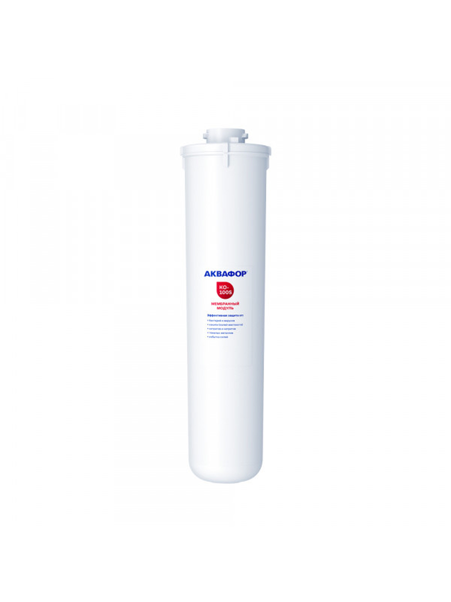 Обратноосмотическая мембрана Аквафор КО-100S обеспечивает глубочайшую очистку и абсолютное умягчение воды, очищая до 375 литров в сутки. Этот высокопроизводительный фильтр подходит для стационарных систем обратного осмоса Аквафор Осмо-Кристалл и серии DWM. Под давлением через мембрану могут пройти только молекулы воды, в то время как все вредные примеси, включая бактерии, вирусы, нитриты, нитраты, остатки антибиотиков и соли жесткости, отбраковываются и уходят в дренажную систему. Замена мембранного блока осуществляется аналогично другим модулям: старая мембрана снимается нажатием кнопки на коллекторе, а новая устанавливается простым поворотом до щелчка.