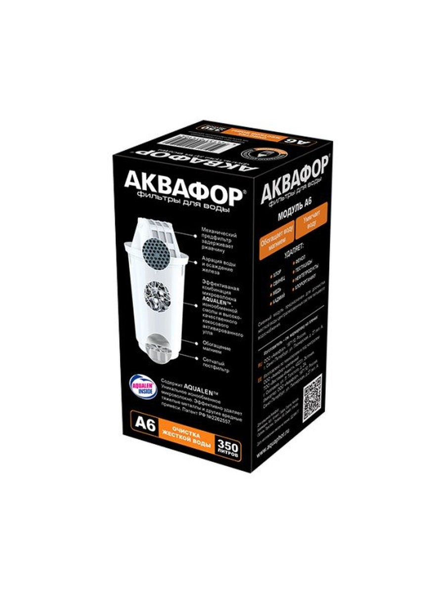 Аквафор А6 — современная модификация популярного сменного модуля для кувшинов, созданная специально для эффективного очищения воды от вредных примесей, придания ей приятных вкусовых качеств и уменьшения образования известкового налёта. Применим для воды низкой и умеренной минерализации, создавая комфортные условия для повседневного использования воды в доме.