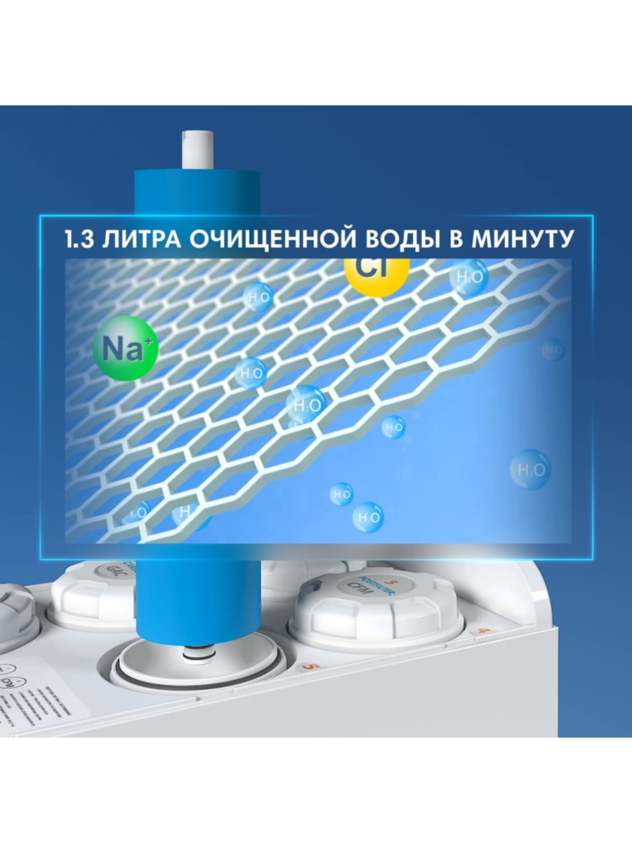 - Умный процессор управляет автоматической промывкой мембраны и контролем датчиков протечек.