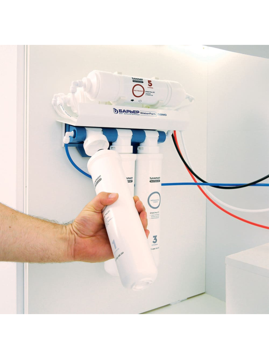 Этапы очистки воды фильтром Барьер WaterFort Осмо