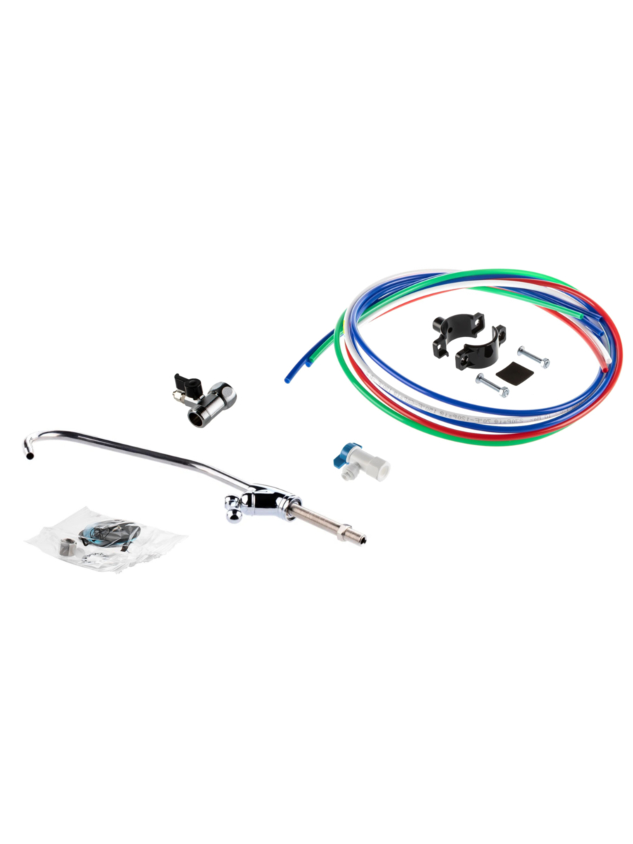 - В комплект поставки входит накопительный бак объемом до 8 литров, обеспечивающий запас чистой воды, и хромированный кран для комфортной подачи фильтрованной воды.