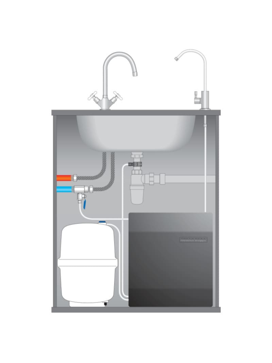 - Компактные размеры и стильный дизайн позволяют легко установить фильтр под кухонную мойку, не нарушая эстетику интерьера.
