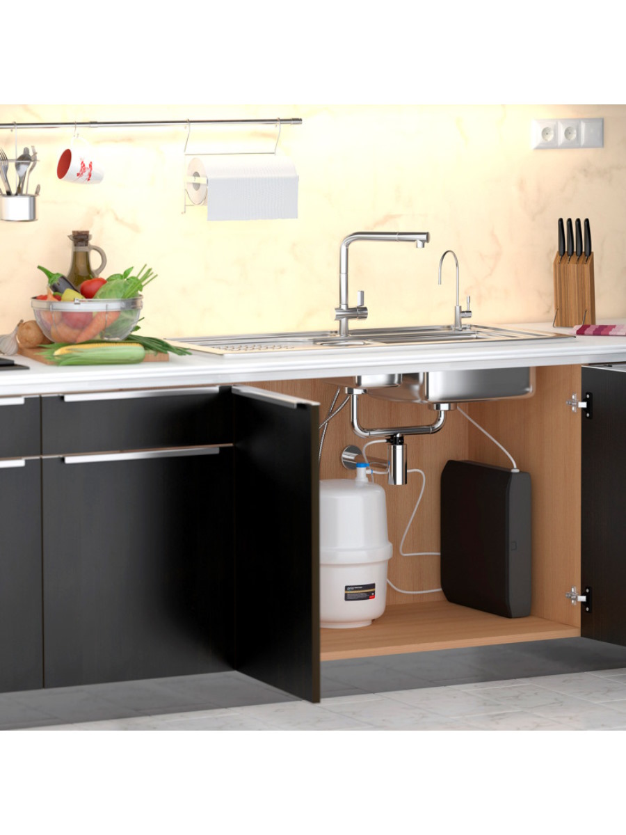 - Компактные размеры позволяют установить фильтр под кухонной мойкой, не нарушая дизайна интерьера.