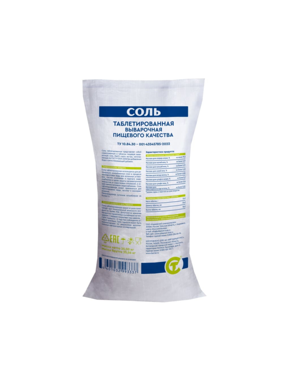 - Удобная упаковка весом 25 кг позволяет оптимизировать логистику и хранение, обеспечивая значительный запас соли для регулярных процедур регенерации.