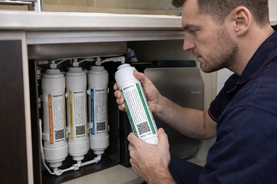 Рекомендация: замена картриджей рекомендуется при заметном снижении качества воды или уменьшении пропускной способности системы — обычно каждые 6 месяцев, в зависимости от исходного качества воды и объёма потребления.