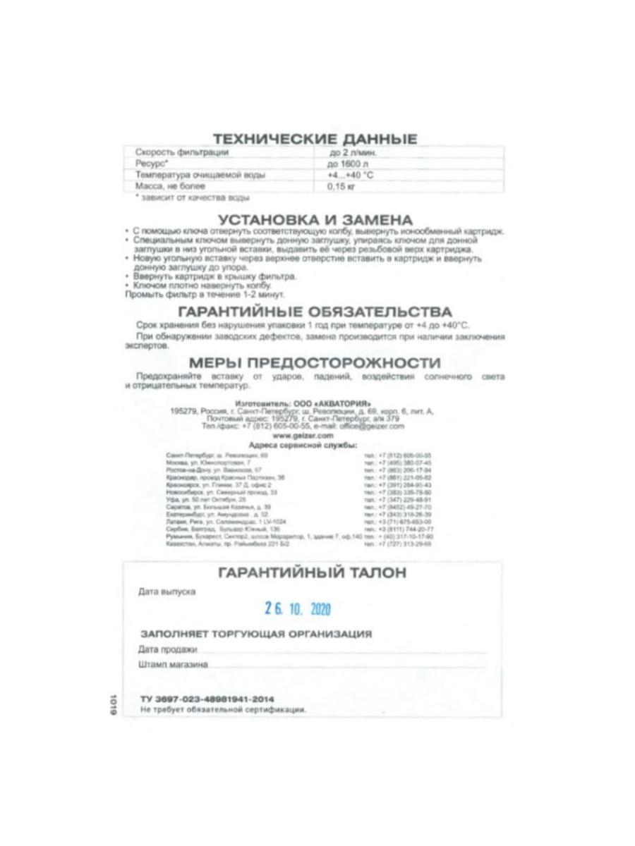 Применение угольной вставки Гейзер-У продлевает срок службы картриджа Арагон SL10, снижая вероятность появления неприятного привкуса и запаха, вызванных избытком хлора в воде.