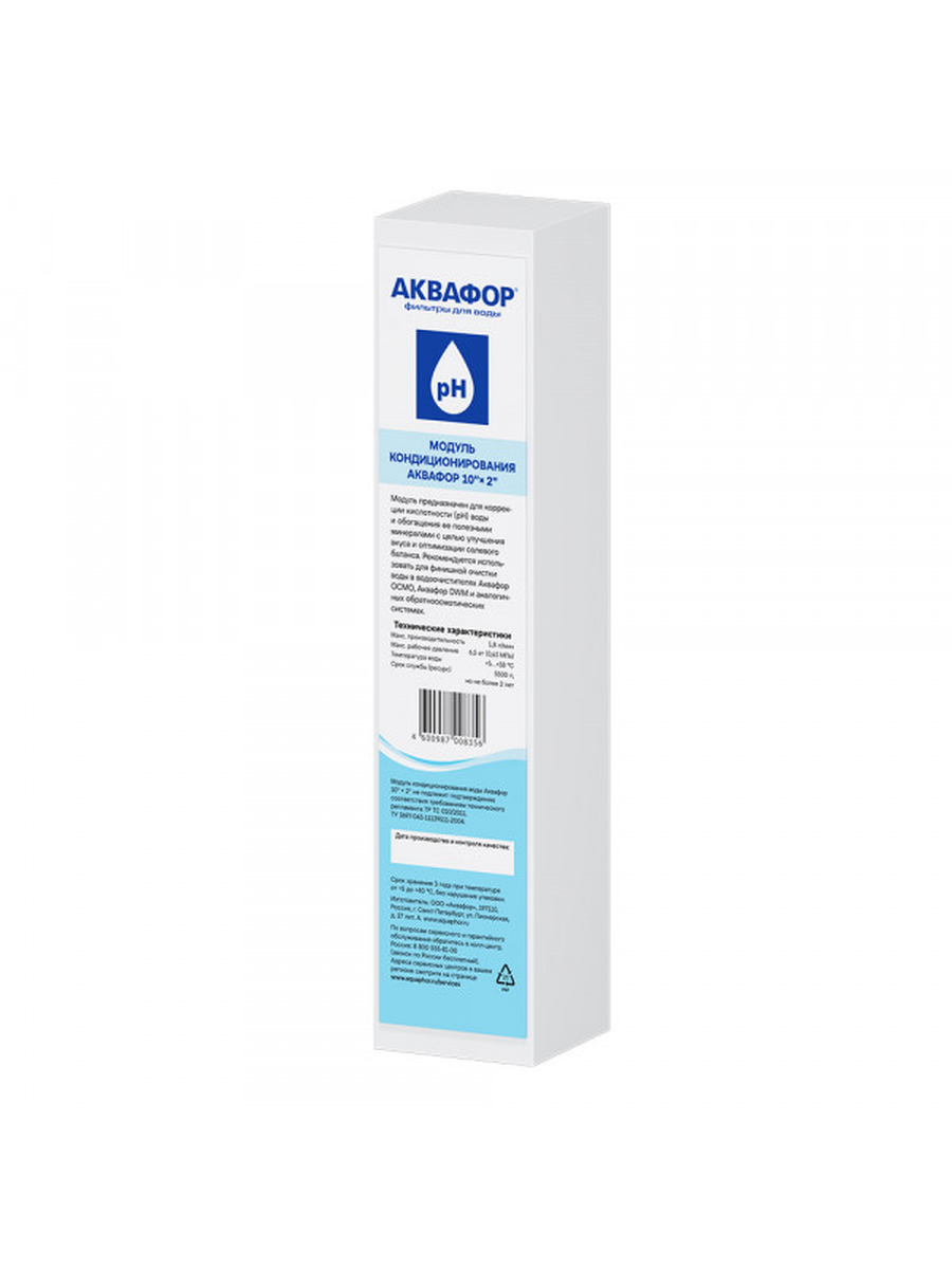 Модуль кондиционирования воды Аквафор сочетает в себе активированный кокосовый уголь и натуральные минералы, богатые солями магния. Этот модуль предназначен для точной коррекции pH воды, обогащая её полезными минералами и улучшая вкусовые качества, что способствует нормализации солевого баланса. Особенно рекомендуется для использования в качестве последнего этапа очистки в обратноосмотических системах, таких как Аквафор-ОСМО, Аквафор DWM и других подобных установках. Выбор надежной системы очистки воды — залог здоровья и благополучия вашей семьи.